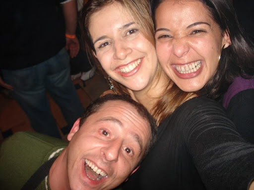Dani, Tete e uma terceira pessoa (juro que queria lembrar... ) numa baladinha básica no anexo.. (o tiozinho de fundo tava lá mesmo e é balada.... não quermesse...)